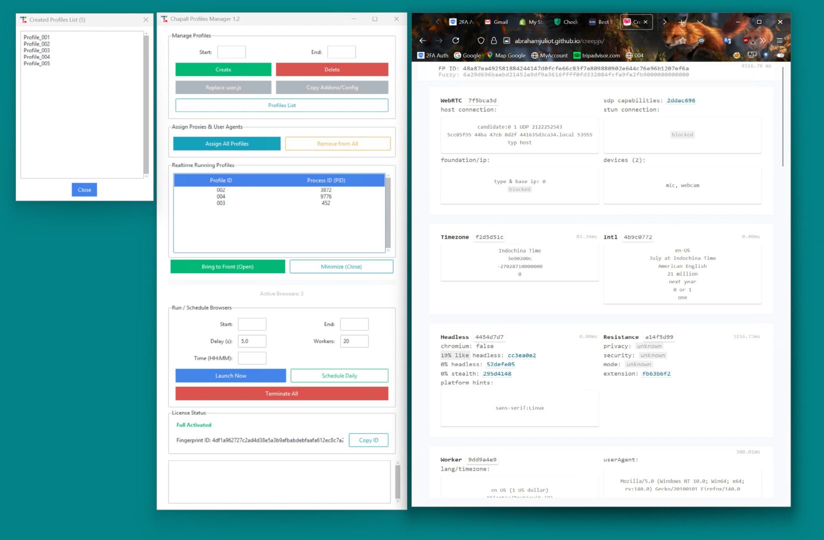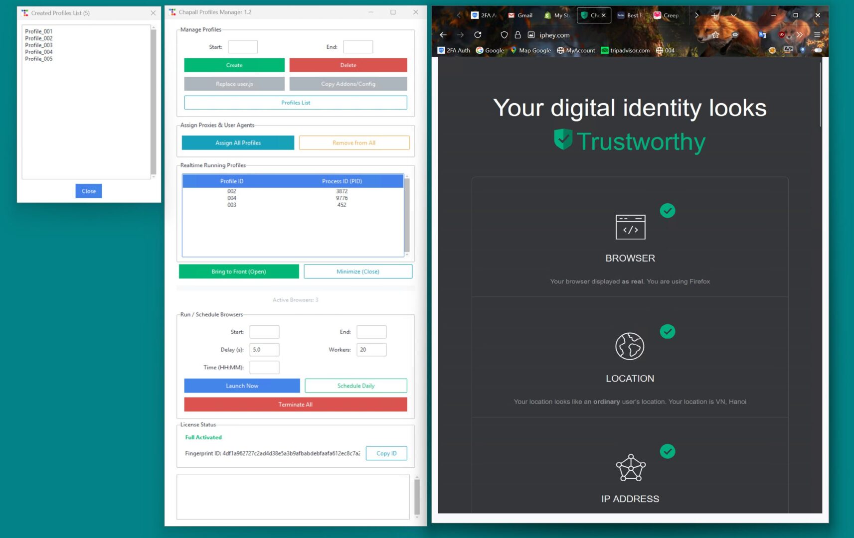 Chapall không chỉ là một trình duyệt antidetect. Đây là một hệ thống quản lý số lượng lớn profiles hoàn chỉnh. Chúng tôi cho phép bạn tạo không giới hạn profiles, mỗi profile có một “danh tính số” độc lập, giúp bạn qua mặt các hệ thống kiểm duyệt.